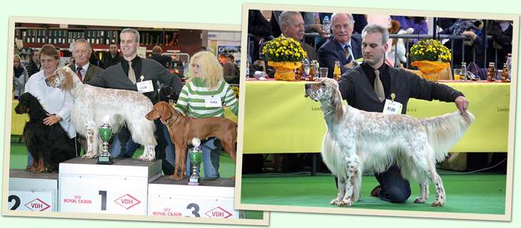 | 26.06.2010 World Dog Show, Herning, DK - Wir freuen uns mit den beiden Guldegg-Vertretern über ihre hervorragenden Bewertungen: DtJugCh, ÖJCH, VDH-EJS, LJS Elitiste Mr Rodney Rodney von der Guldegg (JuKl): V2 C.I.E. ÖCH Dt.Ch.(VDH) SkCh SkGrandCh SlovCh HCH CzCh ÖJCH Suit Yourself Startailor Sunny von der Guldegg (VeKl): World Veteran Winner 2010 & Veteran BOB Herzliche Gratulation an Stephan und Michaela Götz und Frau Elisabeth Preissl !! Die Ergebnisse der English Setter |