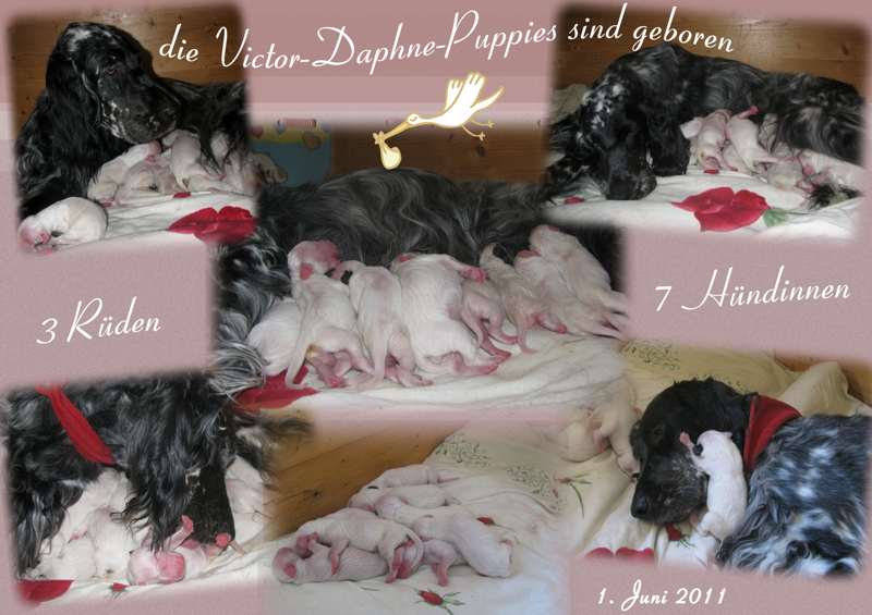 | 01.06.2011 Pünktlich zu Neumond war es soweit ... die GANG OF GLORY wurde geboren. Daphne und den Welpen geht es gut und hier die ersten Bilder aus der Welpenstube ... | |