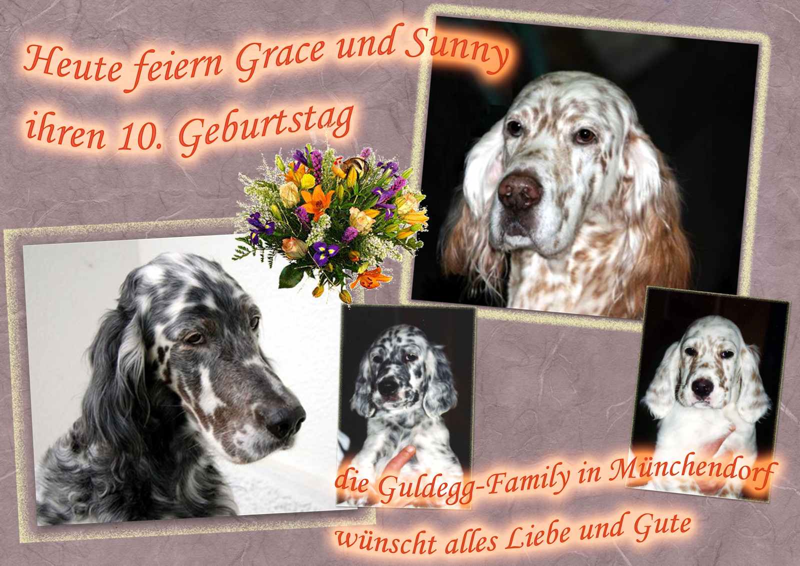 | 26.04.2011 Happy Birthday liebe Annie! ... und schon wieder sind neun Jahre wie im Flug vergangen ... und es waren ganz tolle Jahre mit dir ... Annie sagt Danke für die lieben Glückwünsche und diese wunderbare Geburtstagskarte, die sie von ihrer lieben Tochter Grace heute erhalten hat. | |