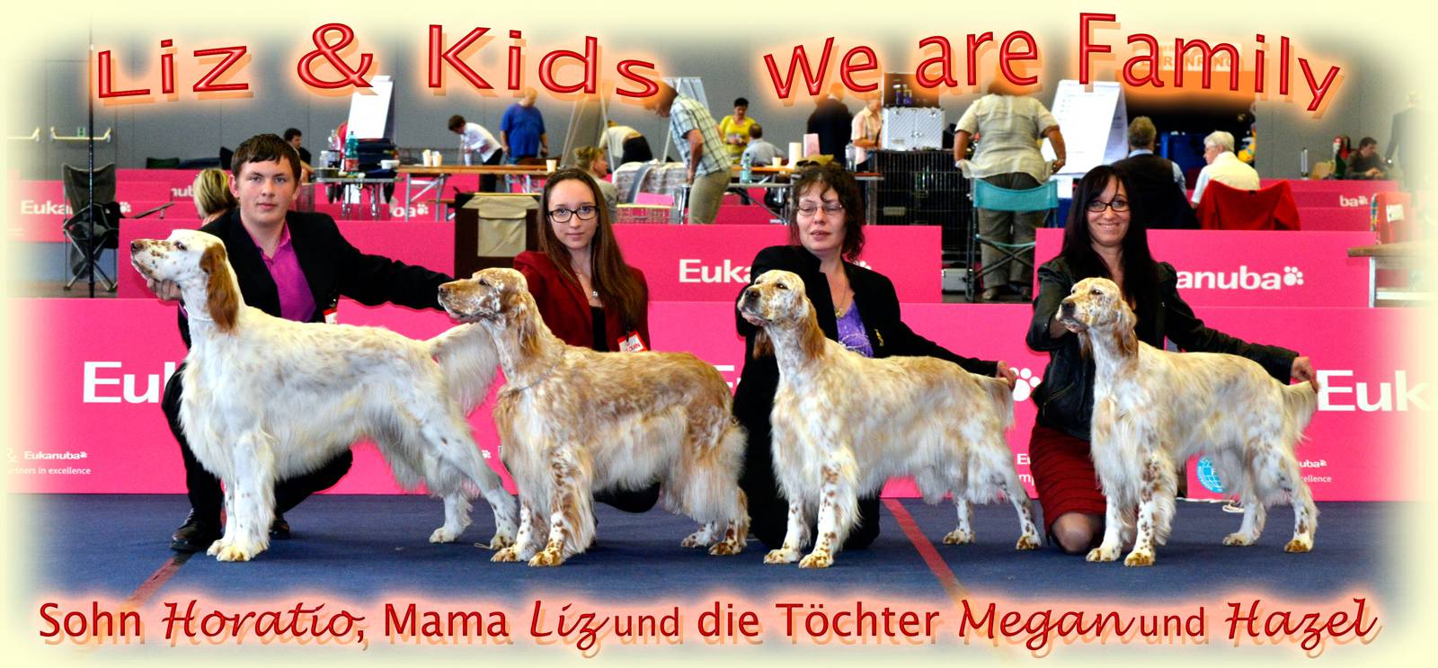 | 27.04.2013 CACIB Salzburg - Liz und ihre drei Kids päsentieren sich in Topform und punkten vor allem mit ihrem bestechenden freudigen Gangwerk und ihrer wunderbaren Ausstrahlung. Viel besser geht es wohl nicht?! Vielen herzlichen Dank an Lea Molnar und Esther Siegrist für die schönen Bilder. VDH-EJS '12, Lux.Jun.Ch., ÖJCH, Dt.Jug.Ch.(VDH), SkJCh, BJS Heather HoneyMoon Megan von der Guldegg (OKl): V1, CACA, CACIB, BOB, BOG-3 ÖJCH, SkJCh Hazel Heavenly Heart Hazel von der Guldegg (ZwKl): V1, CACA, Res.CACIB Gillian Leigh Anderson Gladys von der Guldegg (OKl): V2, Res.CACA C.I.E., ÖCH, Dt.Ch.(VDH), SkCh, ÖJCH, Dt.Jug.Ch.(VDH), SkJCh, BS, LS, KS, LJS You Make No Mistake Liz von der Guldegg (VeKl): V1, BEST VETERAN, BEST VETERAN OF DAY-2 VDH-EJS '12, Dt.Jug.Ch.(VDH), ÖJCH, SkJCh, Jug.Ch.HR, KJS Honored Prophet Horatio Horatio von der Guldegg (ZwKl): V1, CACA, CACIB, BOS Dt.Ch.(VDH), ÖCH, Dt.Jug.Ch.(VDH), Lux.Jun.Ch., ÖJCH, Jug.Ch.HR, VDH-EJS '11, LJS Famous Fred On Fire Fred Jr. von der Guldegg (ChKl): V1, CACA, Res.CACIB | |