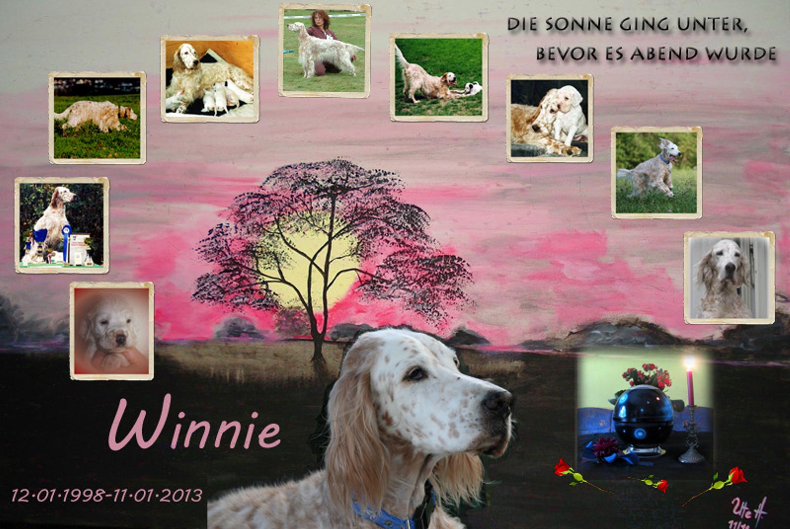 | 11.01.2013 Ein langes erfülltes Leben ist zu Ende .... Wir trauern um unsere heißgeliebte Winnie ... 15 gemeinsame Jahre liegen hinter uns ... Worte vermögen nicht auszudrücken, wie sehr sie uns allen fehlt ... | |