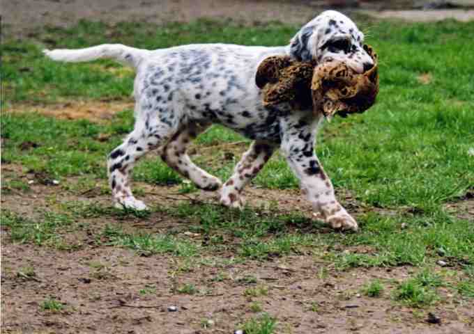 Bei den Vorübungen zum Bringen sind einige wichtige Faktoren zu beachten. Zum einen trainiert man mit jedem Welpen einzeln und vermeidet sogar, dass die Wurfgeschwister bei dieser gemeinsamen Arbeit