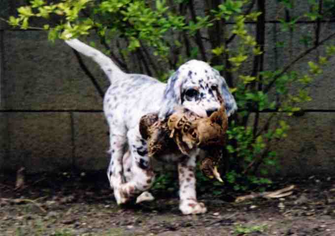 wird. Dazu wird es an einem Bindfaden befestigt, den man langsam hinter sich herzieht - diesem Reiz, etwas "Lebendiges" zu greifen, wird der Junghund, kaum widerstehen können.